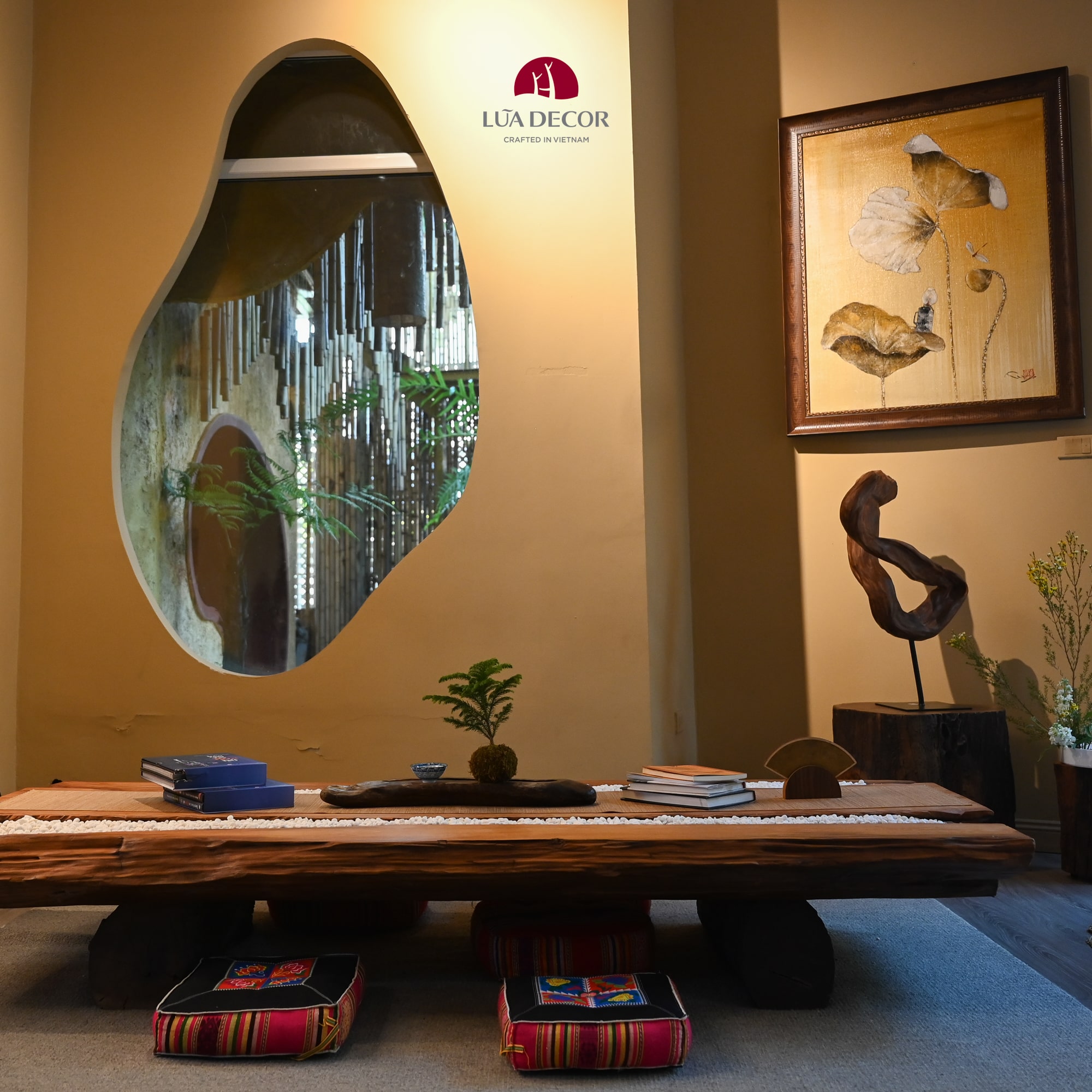 Những chiếc bàn luôn là điểm trung tâm, nơi mọi người quây quần hàn huyên trao đổi. Vậy nên Lũa Decor thường đặc biệt chú trọng đến việc thiết kế ra những chiếc bàn vừa đẹp như một tác phẩm, vừa đơn giản dễ sử dụng với nhiều công năng. Mời các bạn thưởng lãm chiếc bàn đặc biệt có 1 không hai như chiếc bàn Lũa ngọc am này nhé.