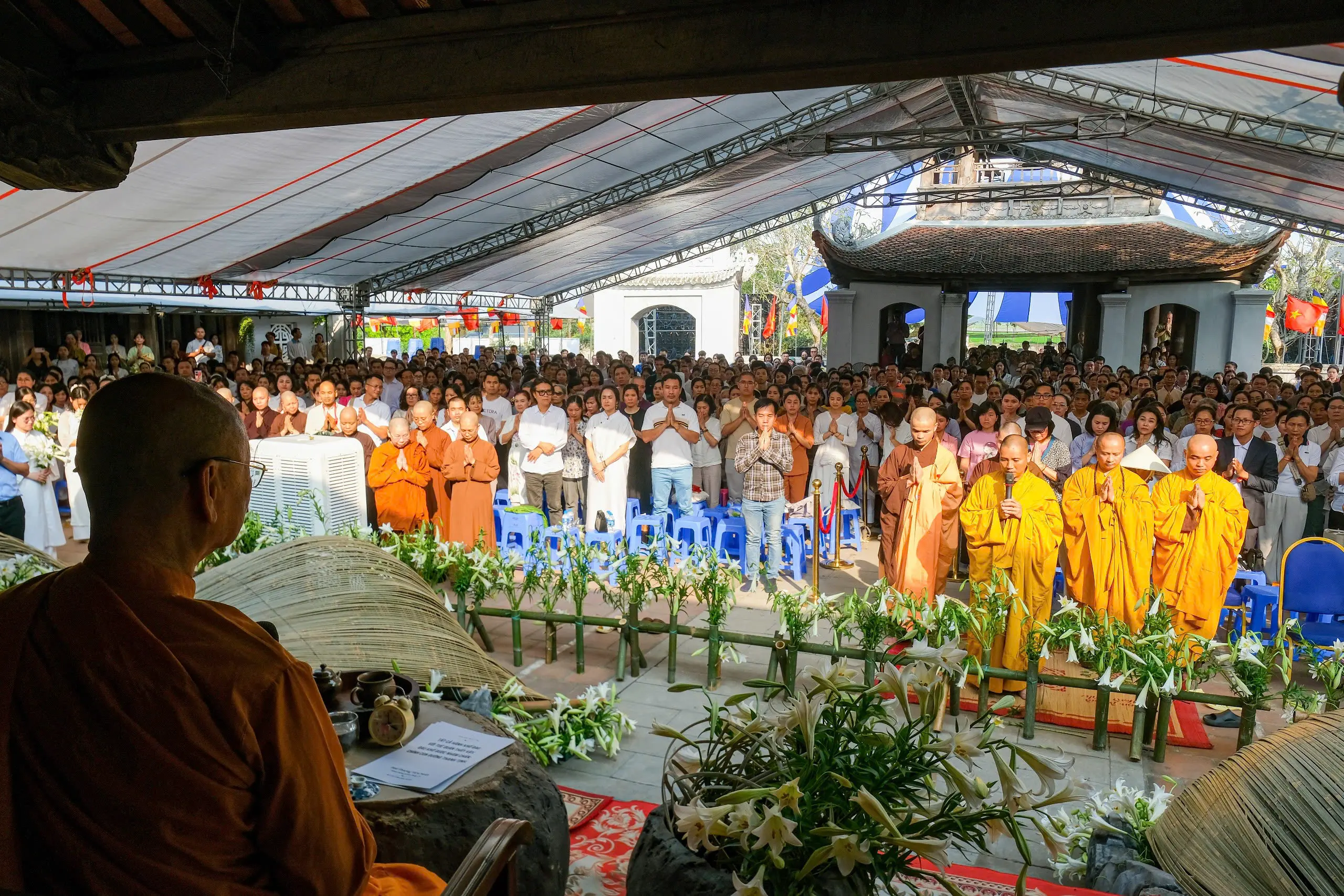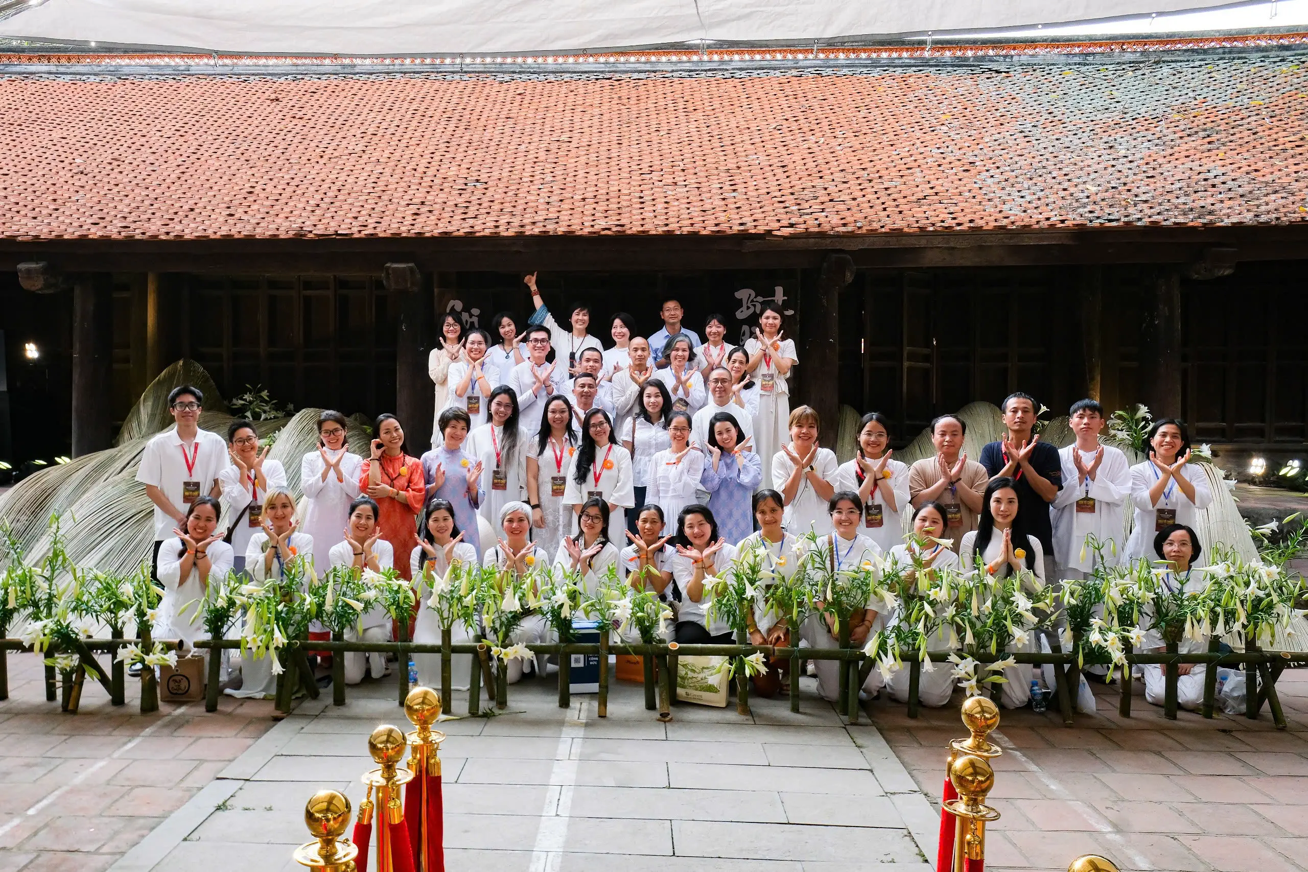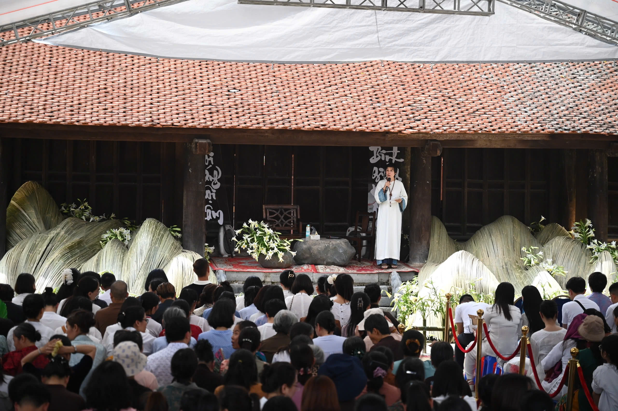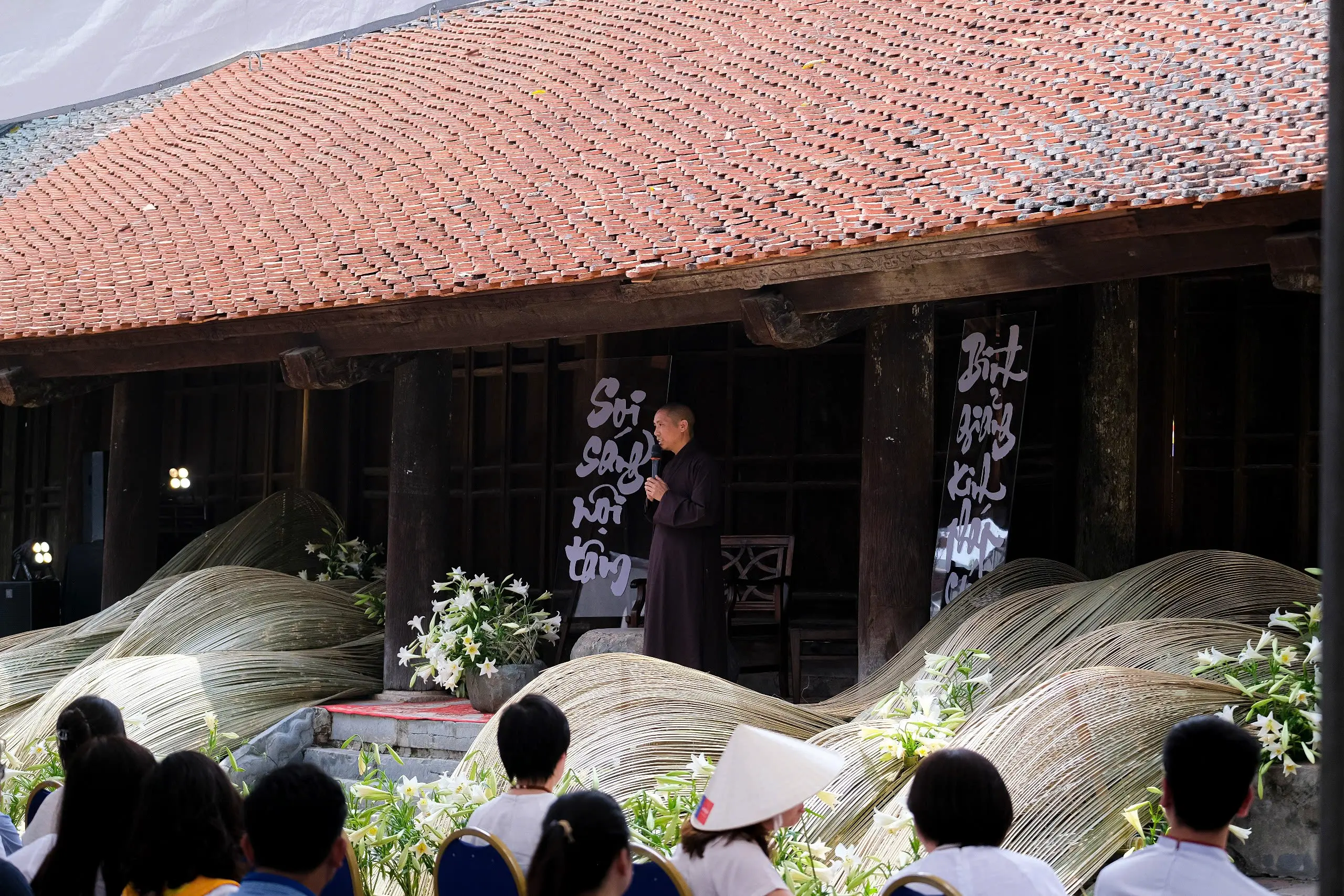 Tác phẩm được thực hiện bởi nghệ sĩ sắp đặt Thanh Hiền và cộng sự cùng rất nhiều tình nguyện viên của sự kiện. Đây là một tác phẩm của trường phái Hoa Đạo Ikebana Sogetsu – một loại hình nghệ thuật đương đại kết hợp tự nhiên và tâm thức. Chỉ có hai loại nguyên liệu tre và hoa loa kèn được sử dụng để tạo nên một dòng chảy từ bên trong nhà Tiền đường – Chùa đậu hướng ra bên ngoài.