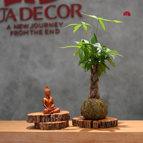 Cây ngọc rêu - kokedama Tác phẩm sắp đặt tiểu cảnh thiền này là một tổng thể hài hòa của 3 yếu tố: sự vững chãi, tĩnh tại và năng lượng tích cực từ thiên nhiên trên khối lũa độc bản cùng sức sống và mầm xanh từ tinh cầu ngọc rêu sống động. Những góc xanh an yên này được cân bằng bởi yếu tố thứ 3 là pho tượng Phật được thiết kế riêng cho từng không gian sống và làm việc để bạn đạt tới nghệ thuật sống thời đại: sự bình yên nội tại của tâm hồn, tâm tĩnh để nhìn xa hơn, thư thái và sáng suốt hơn trong công việc và cuộc sống. Những giá trị trường tồn của thiên nhiên gửi gắm trong từng tác phẩm của LŨA DECOR đang chờ duyên để đến với mỗi không gian sống của bạn với tinh thần hài hoà với thiên nhiên trong từng thiết kế, nhằm mang lai không gian sống nghệ thuật hơn, sự cân bằng phong thủy từ chất liệu gỗ, thêm nhiều năng lượng tích cực và an yên cho mọi không gian sống. Có thể gọi Ngọc rêu (Kokedama) là quả cầu sống, một cách trồng cây của người Nhật, bằng cách dùng một quả bóng đất và rêu để trồng cây theo một công thức đặc biệt nuôi cây đến 2 năm mà mỗi tuần chỉ cần “tưới” nước 1 lần vì là “nhà máy điều hoà độ ẩm” để giữ khi thừa nước và nhả khi thiếu nước. Sức sống xanh từ chính rêu và những mầm cây xinh xắn mọc lên mỗi ngày sẽ là một tinh cầu sống động cho không gian sống của bạn. Thông tin về gỗ lũa: Lũa là phần lõi gỗ còn lại sau nhiều năm chôn vùi trong lòng đất, sông suối của các loại cây cổ thụ lâu năm quý, hiếm như nghiến, đinh hương, lim, sến, táu… . Chính vì sự quý hiếm, độ bền và thời gian dài tích tụ năng lượng của thiên nhiên hoang dã mà gỗ lũa có giá trị cao về thẩm mỹ và phong thuỷ. Vì vậy các nghệ nhân của LŨA DECOR đã dành rất nhiều thời gian và công sức để sáng tạo ra những sản phẩm gỗ lũa nghệ thuật độc bản, đánh thức sự sống và vẻ đẹp cho các khối gỗ không còn giá trị xanh. LŨA DECOR – A N E W J O U R N E Y F R O M T H E E N D ——————- LŨA DECOR 217A Trường Chinh - Thanh Xuân, Hà Nội Hot line: 0966369369 (viber/zalo/whatapp) Follow us: www.instagram.com/luadecor.vn http://www.luadecor.vn