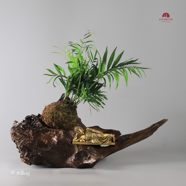 Tác phẩm sắp đặt này một tổng thể hài hòa của 3 yếu tố: sự vững chãi, tĩnh tại và năng lượng tích cực từ thiên nhiên trên khối lũa độc bản cùng sức sống và mầm xanh từ tinh cầu ngọc rêu sống động. Những góc xanh an yên này được cân bằng bởi yếu tố thứ 3 là pho tượng Phật được thiết kế riêng cho từng không gian sống và làm việc để bạn đạt tới nghệ thuật sống thời đại: sự bình yên nội tại của tâm hồn, tâm tĩnh để nhìn xa hơn, thư thái và sáng suốt hơn trong công việc và cuộc sống.